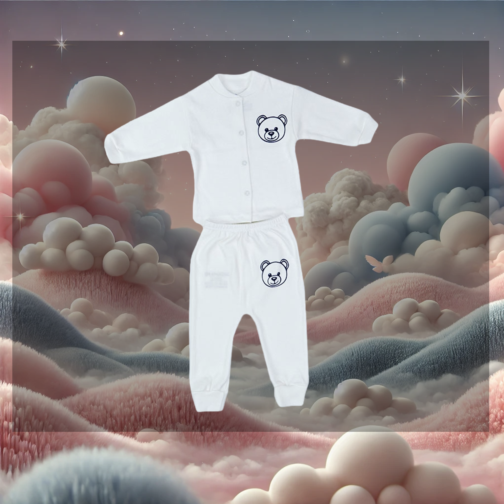 Ein süßes Bärchenmotiv schmückt die Brust des Oberteils und verleiht Ihrem kleinen Liebling einen niedlichen und liebenswerten Look.