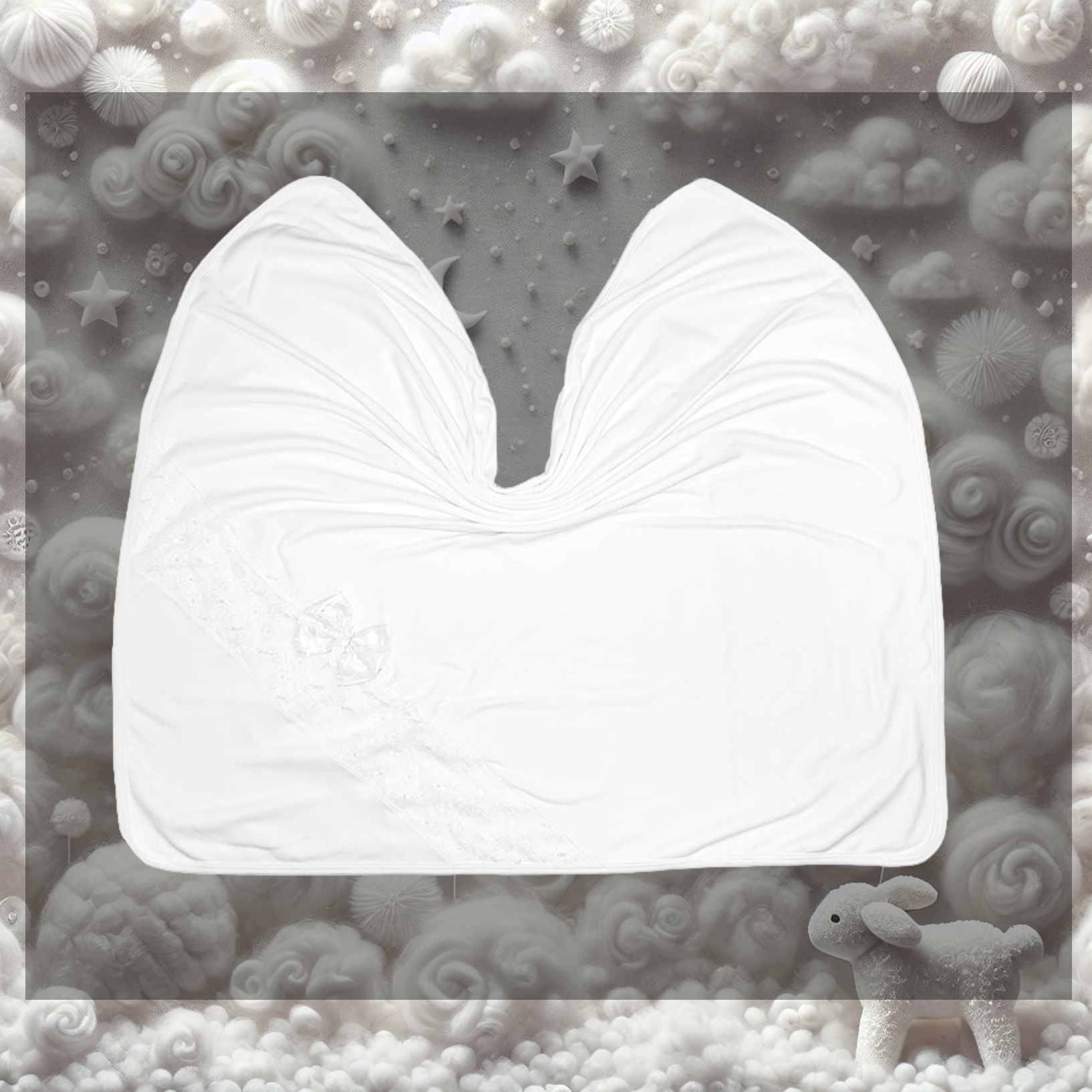 Die Neugeborenendecke in Weiß mit einem zarten Spitzenmuster ist ein bezauberndes und elegantes Accessoire, das speziell für die zarte Haut eines Neugeborenen entworfen wurde. Diese Decke kombiniert die Weichheit von hochwertiger Baumwolle mit der romantischen Schönheit der Spitze, um eine wunderschöne und funktionale Ergänzung zur Babyausstattung zu schaffen.