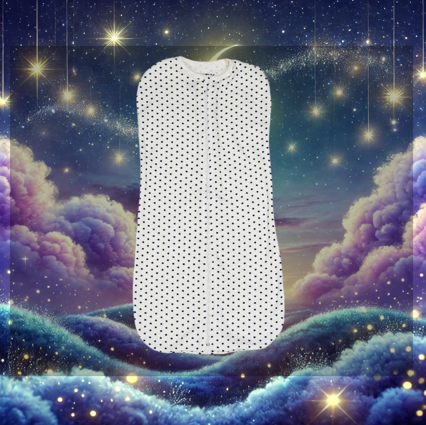 Das zeitlose Design des Pucksacks mit den niedlichen dunkelblauen Punkten verleiht ihm eine zauberhafte Ästhetik. Egal, ob für Jungen oder Mädchen, dieses geschlechtsneutrale Design passt perfekt in jedes Kinderzimmer und wird Ihr Baby in eine gemütliche Schlafumgebung hüllen.