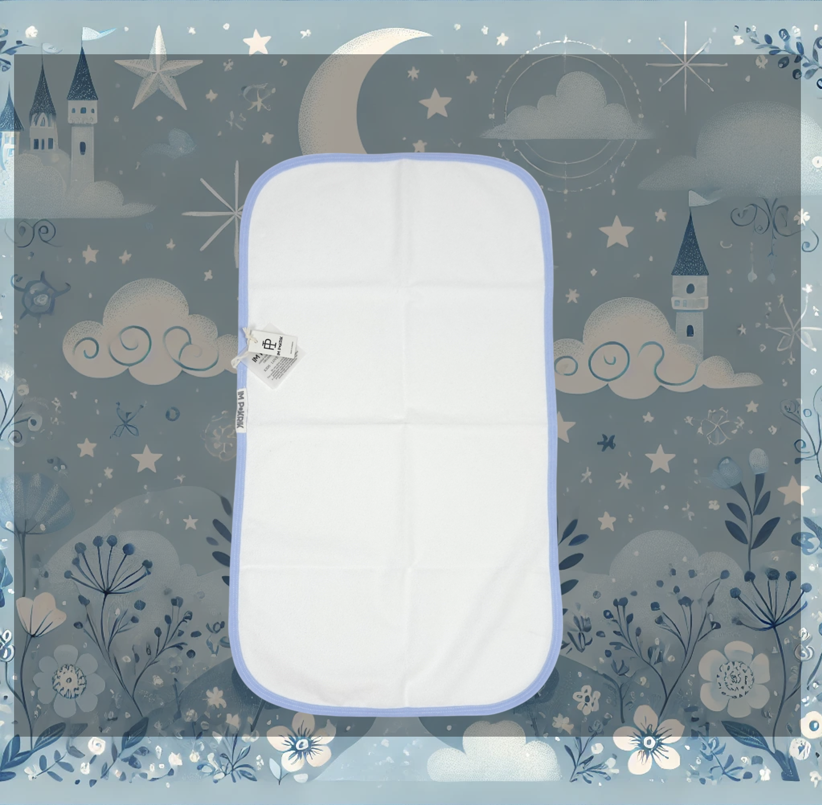 Insgesamt bietet die beschriebene Wickelunterlage mit ihrem blauen Saum, der weißen Baumwolloberfläche und der wasserabweisenden Eigenschaft eine praktische, hygienische und komfortable Lösung für das Wickeln Ihres Babys.