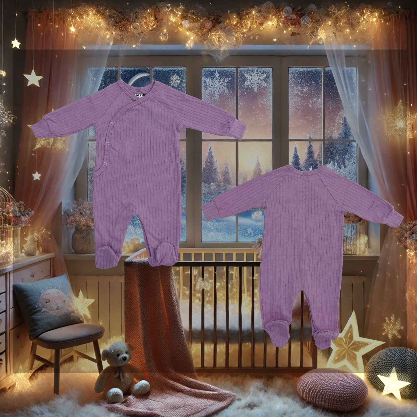 Der Strampler ist in den winterlichen Farben Rot und Lila erhältlich, was eine fröhliche und gleichzeitig gemütliche Atmosphäre schafft. Diese Farbauswahl verleiht dem Strampler eine festliche Note und sorgt dafür, dass Ihr Baby im Winter stilvoll aussieht.